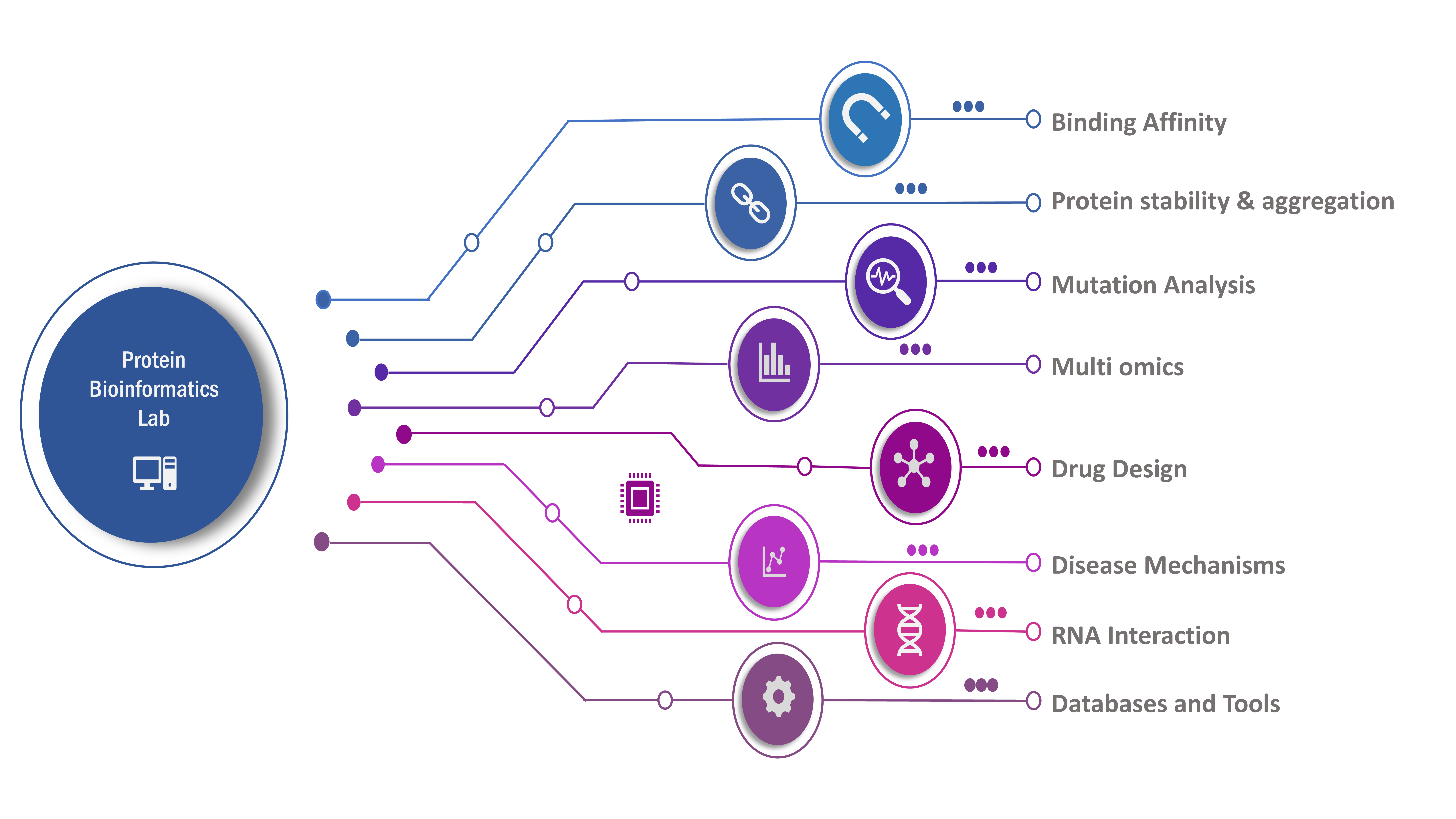 The Protein Bioinformatics Laboratory was established at the Department of Biotechnology at the Indian Institute of Technology Madras in December 2010. Our primary objective is to elucidate the sequence-structure-function relationship of proteins through the application of bioinformatics, biophysics, and computational biology techniques. Our research encompasses various projects focusing on protein structure, folding, stability, interactions, and aggregation. Additionally, we are focusing on disease-causing mutations in membrane proteins, next-generation sequencing analysis, the application of deep learning in life sciences, proteome-wide annotations, and structure-based drug design. We have also commenced experimental procedures to validate several of our analytical findings.